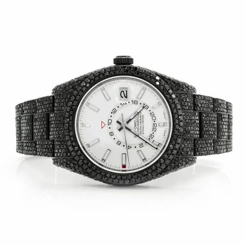 R*L*X Stainless Steel Luxurious Vintage Rare Black Dial Fully Iced Out Moissanite Watch Hip Hop Lovers Dream