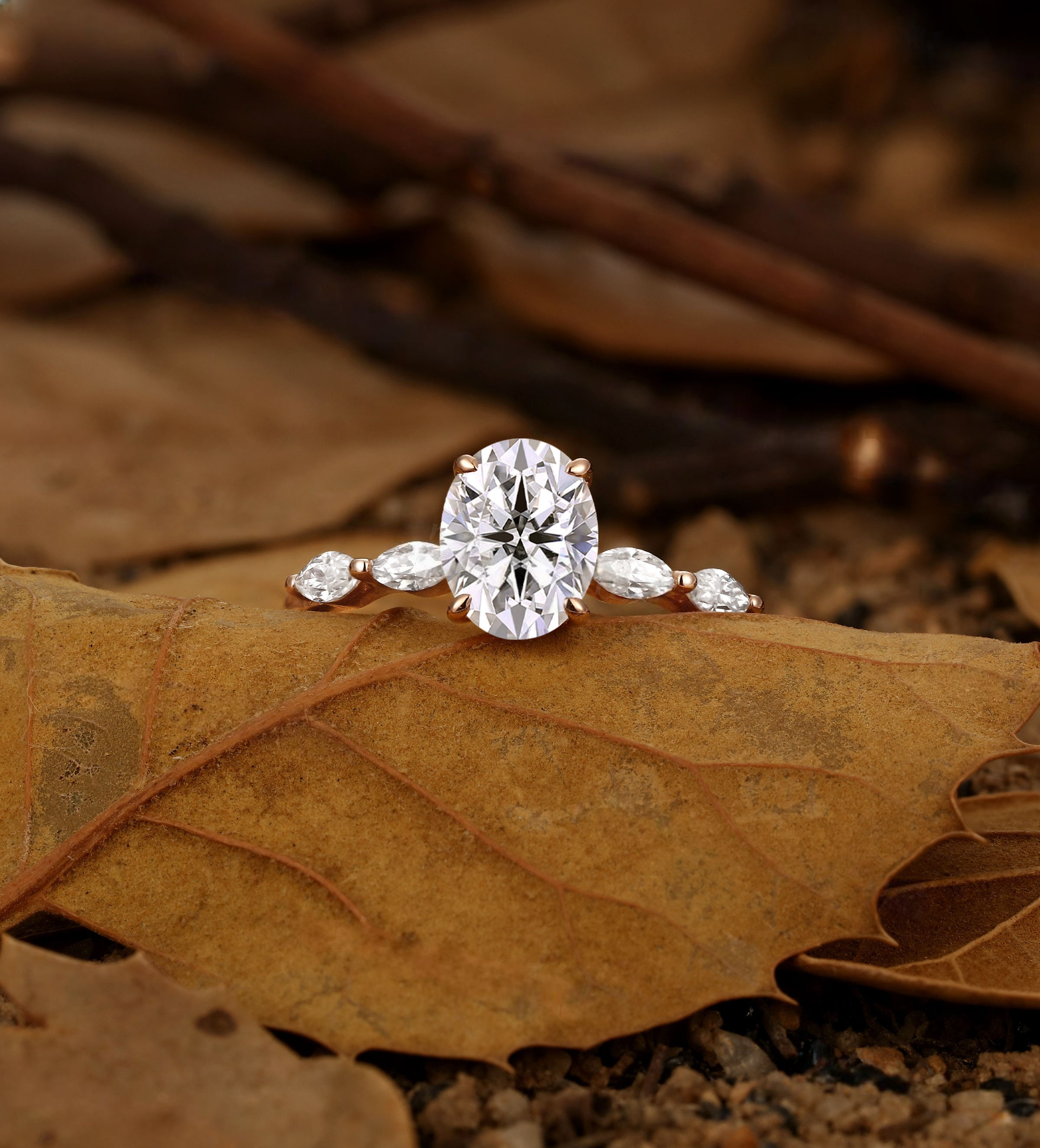 Custom Jewelry/ 6x8mm Oval Cut Engagement Ring/ Prong Set Wedding Ring/ Cluster Ring/ 14K Rose Gold Ring/ Personalized Handcrafted Ring